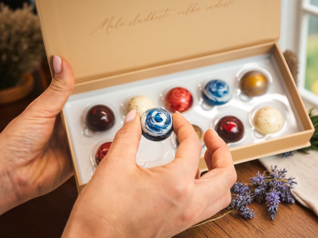S každým soustem našich pralinek objevujete nejen exkluzivní chuť, ale i krásu ruční práce a osobitý design, který dělá každý kousek neopakovatelným.